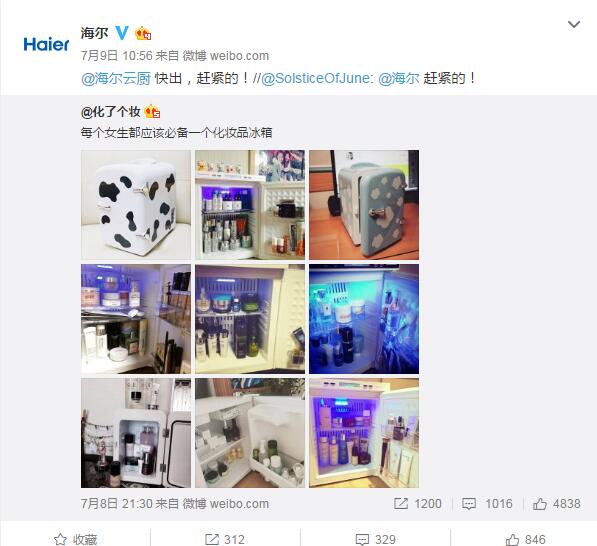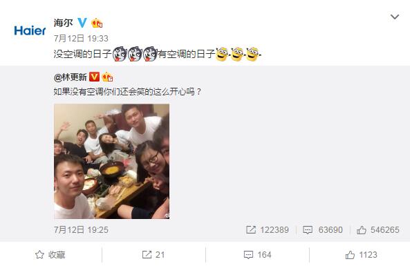 說到海爾,大家的第一印象大多都是搶熱門。比如唐嫣羅晉公布戀情時,海爾官微借勢發(fā)布微博"啥時候成親?需要冰箱空調(diào)洗衣機么"成功帶領(lǐng)了一眾藍V搞事情,因為這個句式很容易被模仿,所以藍V的參與度非常高。