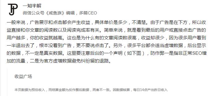 需要說明的是:閱讀量和點擊量要成比例不能過高,按照我做百度聯(lián)盟的經(jīng)驗。不要超過 1%。僅供參考,具體的大家測試測試,發(fā)群里。目前,沒有懲罰機制。