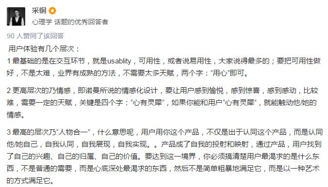 大神的這個(gè)解釋是不是很哲學(xué)?說了一大頓根本不知道在說什么。通俗的解釋是,產(chǎn)品用戶體驗(yàn)做的好,就是我們用產(chǎn)品的時(shí)候感覺好,便利親切,一切以我們的角度來設(shè)計(jì)。