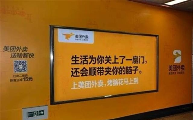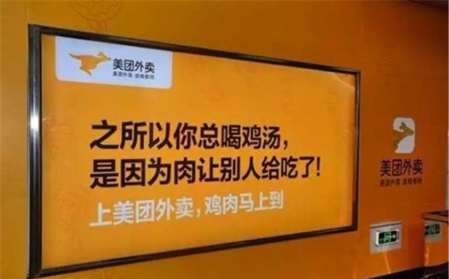 美團(tuán)外賣的喪氣毒雞湯也是地鐵里的一股清流。